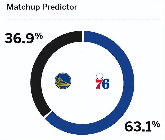 赛前,美媒ESPN对本场比赛进行了胜率预测,76人胜率为63.1%,略占上风,勇士队胜率则仅有36.9%。